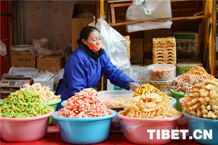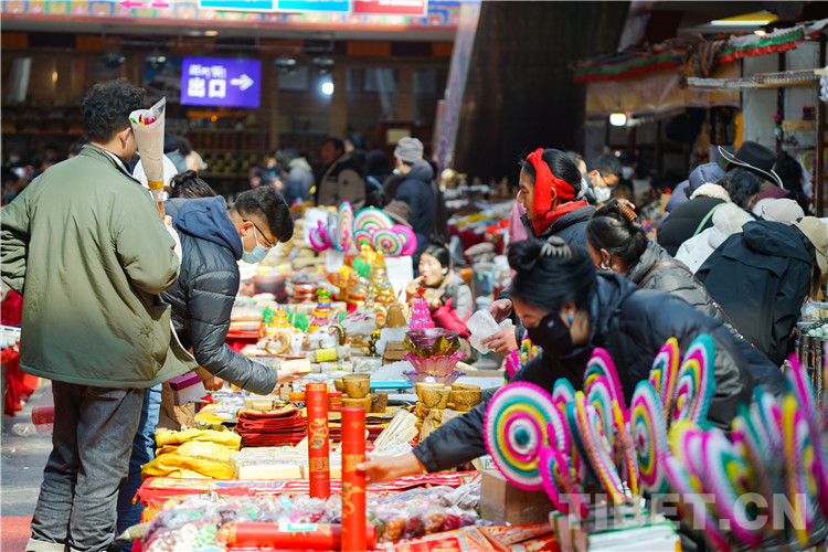 中國西藏網(wǎng)訊 藏歷新年和新春佳節(jié)即將到來,西藏自治區(qū)拉薩市大街小巷熱鬧非凡。年貨一條街、超市、商店?duì)幭嗤瞥龈魇侥曦洠教帍垷艚Y(jié)彩,處處洋溢著喜慶的氛圍。記者于近日來到八廓商城,通過一組照片帶大家一起感受喜迎藏歷新年的濃濃氛圍。(中國西藏網(wǎng) 記者/趙振宇 王佳豪)