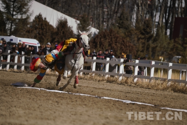 中國西藏網(wǎng)訊 2月12日上午,藏歷木龍新年初三民族傳統(tǒng)馬術(shù)表演暨民族賽馬活動(dòng)在拉薩賽馬場舉行。此次活動(dòng)包括民族賽馬和馬術(shù)表演。其中,民族賽馬包括3000米、5000米、8000米三個(gè)項(xiàng)目,馬術(shù)表演共有18個(gè)大項(xiàng)、20余個(gè)小項(xiàng)。馬術(shù)表演與民族賽馬穿插進(jìn)行。現(xiàn)場約8000名觀眾共同欣賞了精彩的馬術(shù)表演,觀看了激烈的速度賽馬,共慶佳節(jié)。