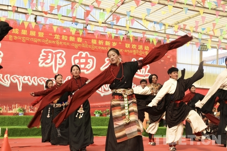 今年春節(jié)和藏歷新年期間,安多縣灘堆鄉(xiāng)為感激黨和國家的關(guān)心關(guān)懷,歌頌來之不易的幸福生活,鄉(xiāng)村文藝隊精心準(zhǔn)備了精彩紛呈的文藝節(jié)目,以嶄新的面貌和昂揚的精神展現(xiàn)新時代牧民群眾的精神風(fēng)貌和幸福生活,舉辦了“鄉(xiāng)村振興 那曲奮進”藝術(shù)成果暨“龍和新年 福祈新歲”慶兩節(jié)聯(lián)歡活動。在當(dāng)?shù)馗刹亢娃r(nóng)牧民群眾的熱情邀請下,同心·共鑄中國心志愿者一行也加入到該活動中,與200多名干部職工和牧民群眾在灘堆鄉(xiāng)文化站歡聚一堂、載歌載舞,共同歡度了一個難忘而充實的大年初一。