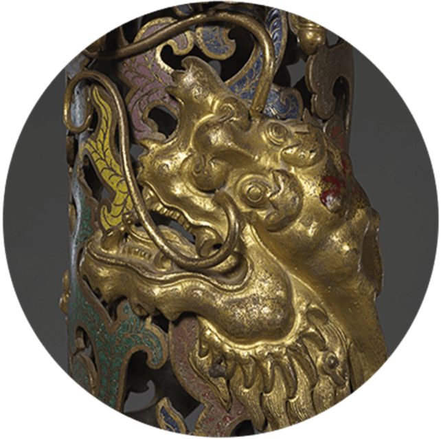蟠龍外形為盤(pán)曲環(huán)繞狀,多盤(pán)卷于圓柱體的器物之上,或反復(fù)穿插于某種物體之中。