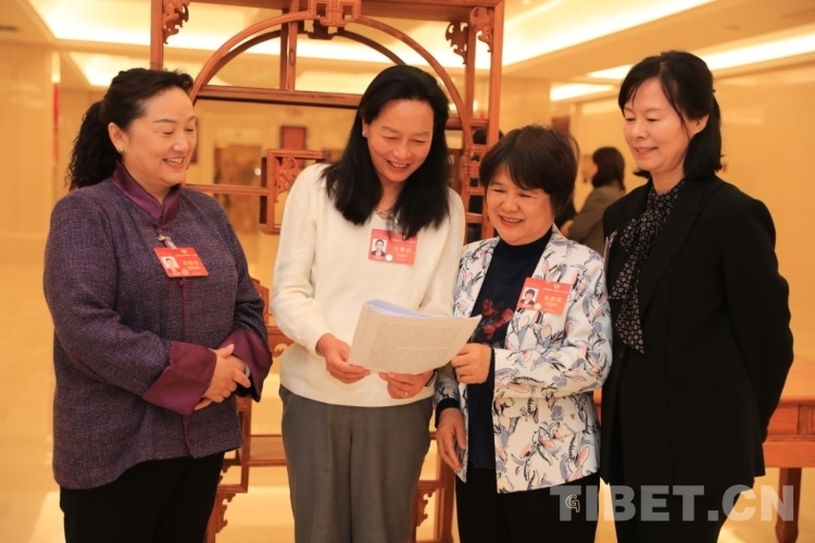 圖為全國(guó)兩會(huì)期間,界別小組會(huì)議時(shí),花德米(左二)與其他委員學(xué)習(xí)會(huì)議文件