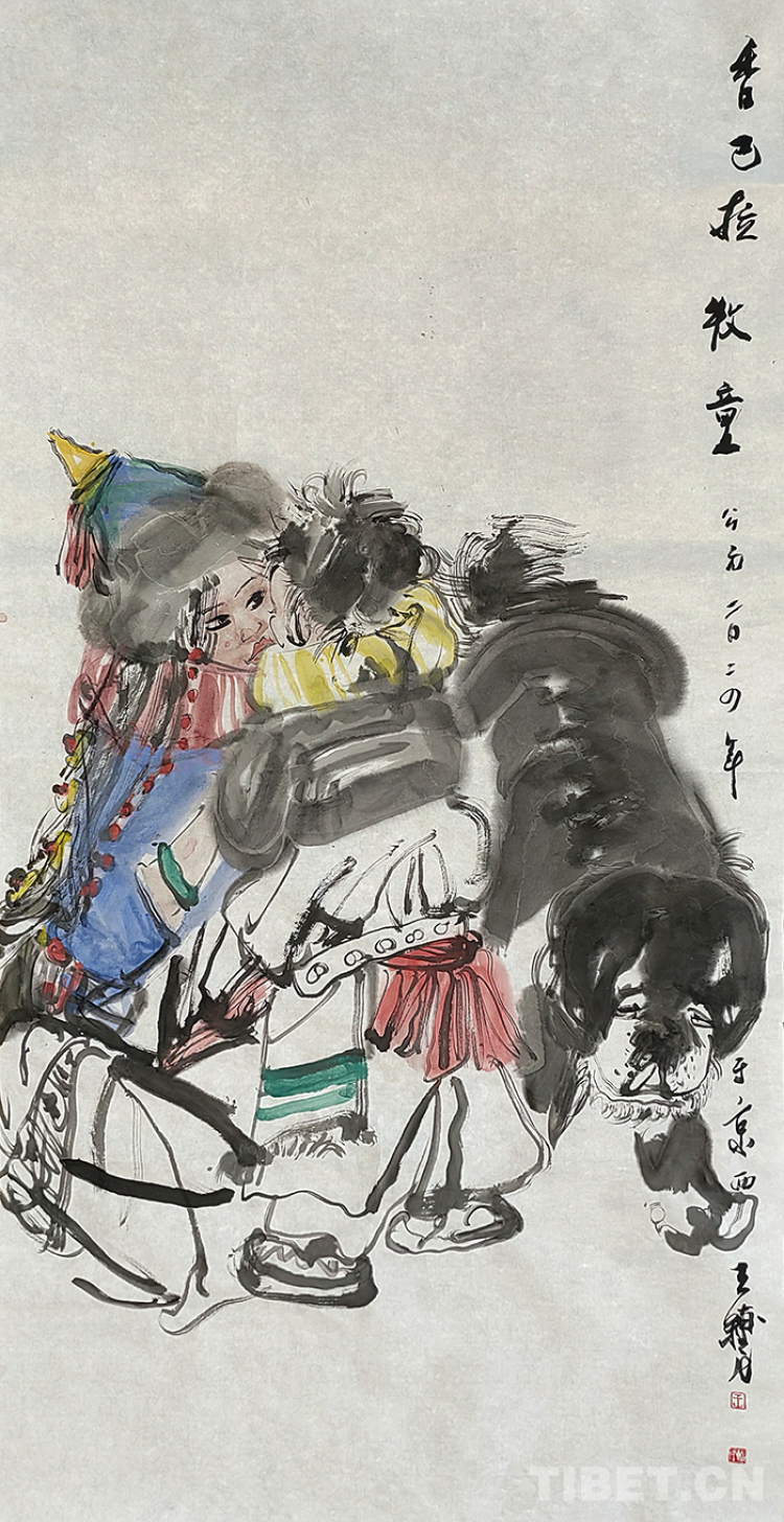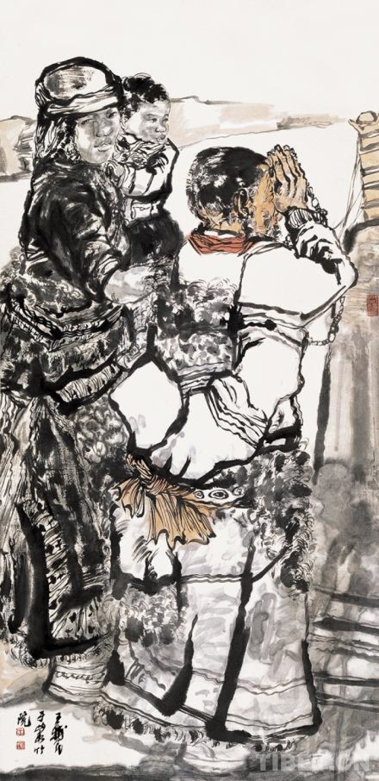 自1978年考入西北師范大學學習中國畫專業(yè),王輔民對表現(xiàn)藏族題材的中國畫充滿興趣。在80年代初,受吳山明老師的影響,王輔民首次接觸到用中國畫水墨形式表現(xiàn)藏族群眾生活的作品,這為他后續(xù)的創(chuàng)作奠定了基礎。1993年調(diào)入蘭州畫院后,他多次到甘肅省甘南州、青海省黃南州和西藏自治區(qū)各地市采風寫生,深入體驗當?shù)厣睿掷m(xù)近30年。這些經(jīng)歷加深了他對西藏文化的了解,也為他找到了藝術創(chuàng)作的切入點和主題。