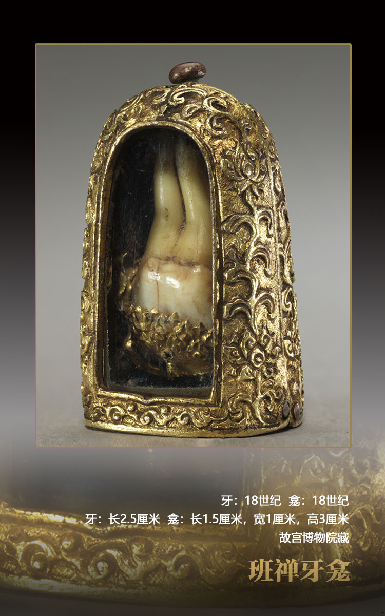 佛教世界的傳統(tǒng)觀念認為,牙也是舍利的一種。在藏傳佛教中,上師火化后留下的牙、骨等均視為神圣之舍利,或供于佛堂,或葬于佛塔內(nèi),永久禮拜。這顆班禪牙也應(yīng)視為班禪最神圣的法物——舍利來看待。