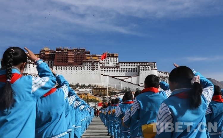 國旗下,拉薩各族各界干部群眾衷心祝愿偉大祖國更加繁榮昌盛,祝愿西藏的明天更加美好。