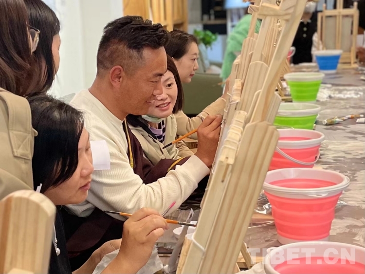 圖為郎卡杰唐卡體驗課現(xiàn)場