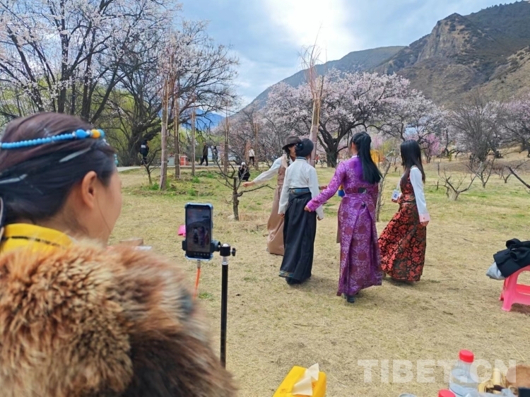 在嘎拉村桃花源內(nèi)、民族文化體驗(yàn)區(qū)、產(chǎn)品展銷點(diǎn)……都能看到林芝市職業(yè)技術(shù)學(xué)校學(xué)生們的身影。學(xué)生們走進(jìn)桃花林,以藍(lán)天白云、皚皚雪山為背景,通過直播帶全國各地的網(wǎng)友們?cè)朴瘟种ァ疤一ǖ谝淮濉?,展示著桃花灼灼盛開的美景。他們生動(dòng)的解說和精彩的直播吸引了大量觀眾“云游林芝 云賞桃花”,體驗(yàn)不一樣的桃源春色。