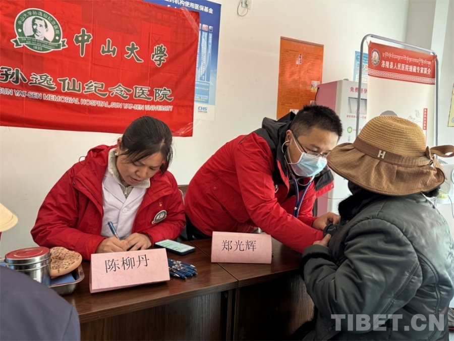 來自廣州中山大學(xué)孫逸仙紀(jì)念醫(yī)院中醫(yī)科的陳柳丹在義診現(xiàn)場為患者開展了中醫(yī)治療,“今天我們開展的中醫(yī)診療包括穴位貼的貼敷、艾灸治療、平衡火罐之類的,我們想讓洛隆的更多群眾了解急救的知識,了解中藏醫(yī)療法?!?/p>