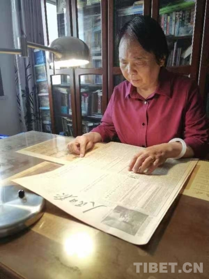 圖為慕曉峰在翻閱當(dāng)年人民日報關(guān)于青藏公路的報道 受訪者供圖