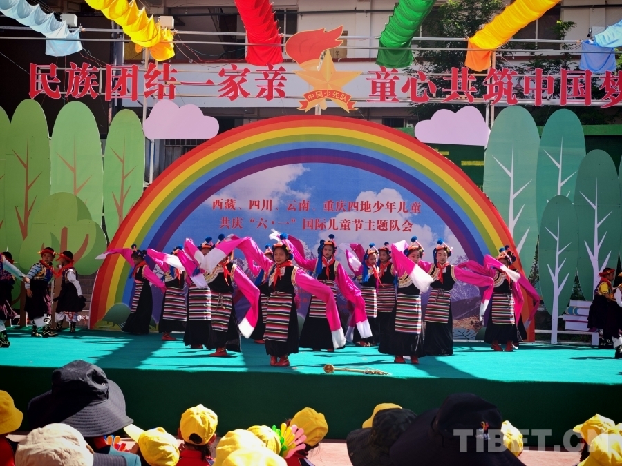 中國(guó)西藏網(wǎng)訊 5月21日-24日,由共青團(tuán)西藏自治區(qū)委員會(huì)、西藏自治區(qū)教育廳、西藏自治區(qū)民族事務(wù)委員會(huì)主辦,西藏、四川、云南、重慶四?。▍^(qū))市少年先鋒隊(duì)工作委員會(huì)協(xié)辦的“民族團(tuán)結(jié)一家親 童心共筑中國(guó)夢(mèng)”四地少年兒童共慶“六一”兒童節(jié)主題隊(duì)會(huì)在西藏昌都市芒康縣納西民族鄉(xiāng)小學(xué)舉行,來(lái)自四?。▍^(qū))市150名少年兒童齊聚一堂,共度盛會(huì)。