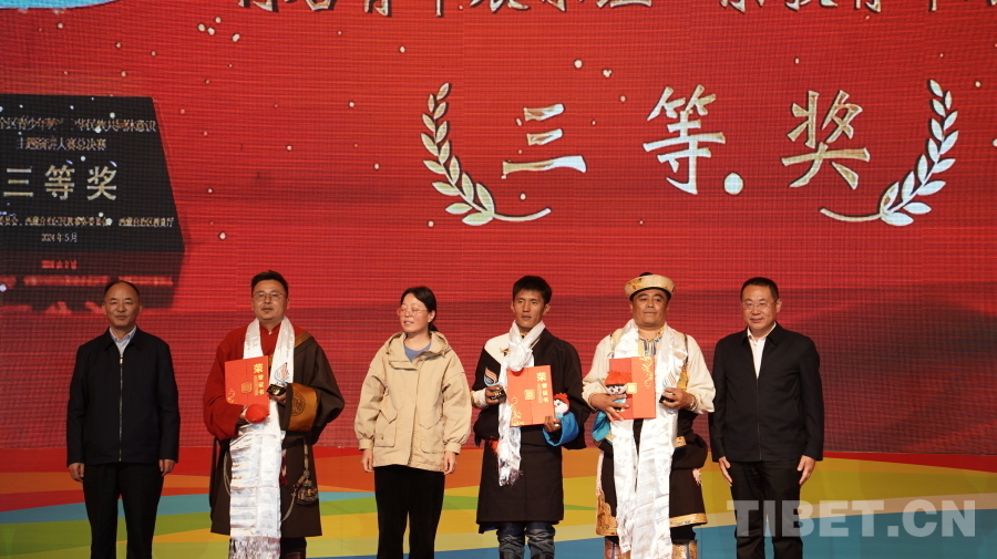 經(jīng)過兩天的激烈角逐,來自全區(qū)7市(地)、7所高校、74個(gè)縣區(qū)、850多個(gè)村居、320所中小學(xué)和85家區(qū)中直單位以及28座寺廟的104名優(yōu)秀選手完成了總決賽各項(xiàng)賽事,最終拉薩市實(shí)驗(yàn)小學(xué)東城分校的徐瑞昆吉獲得小學(xué)組一等獎(jiǎng)、山南市乃東區(qū)昌珠鎮(zhèn)洞嘎社區(qū)洛桑次仁獲得村居青年組一等獎(jiǎng)、拉薩北京實(shí)驗(yàn)中學(xué)的德慶邊宗獲得中學(xué)組一等獎(jiǎng)、日喀則市江孜縣林布寺扎西次仁獲得宗教青年組一等獎(jiǎng)、山南市東輝中學(xué)屈彥碩獲得青年組一等獎(jiǎng),此外還有11位選手獲得二等獎(jiǎng),18位選手獲得三等獎(jiǎng)。