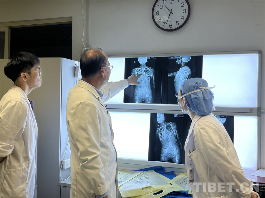 今年年初,李淳德完成了通過同心活動篩選來京治療的4名重度脊柱畸形的藏族患者的救治。其中,23歲的達瓦扎西,脊柱畸形后凸加側(cè)彎畸形,畸形程度扭轉(zhuǎn)了180度,再加上后凸畸形壓迫到內(nèi)臟,給患者的正常生活帶來巨大不便。