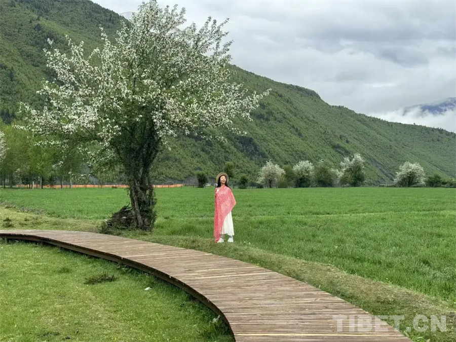活動由中共康定市委、康定市人民政府主辦,中共康定市委宣傳部、康定市文化廣播電視和旅游局、甲根壩鎮(zhèn)人民政府承辦。來自全國各地的多名攝影師在海棠盛開時,打卡康定甲根壩。俄色花在風中飄蕩花落成雪,青稞苗在田地里碧綠翡翠茁壯成長,林間零星點綴的野草搖曳生姿,宛如世外桃源。山間星星點點的白,像極了海子筆下那句“面朝大海,春暖花開”,貢嘎海棠花期雖然短暫,卻如一場驚艷的邂逅,讓人甘心沉浸在這片刻的浪漫之中。