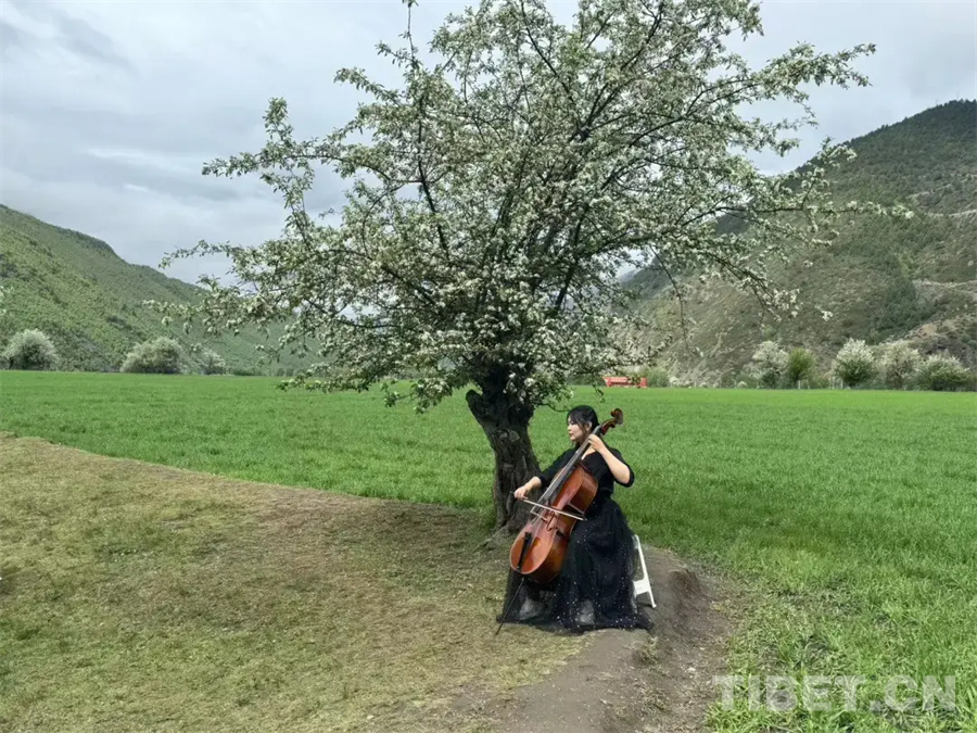 悠揚的樂聲自林間傳來,沿著步道往深處走去,一場特別的演奏會正在進行。枝頭海棠盛放,樹下游人如織,鋼琴、大提琴、笛子等各色樂器奏出的曲調(diào)在貢嘎海棠的映襯下更顯別樣風味,來自西安的韓先生細細聆聽木雅傳統(tǒng)非遺口弦的演奏后不禁感嘆道,“太美了!這個活動將音樂與貢嘎海棠花海巧妙融合,讓我感受到一種別樣的人與自然共生的和諧?!?/p>
