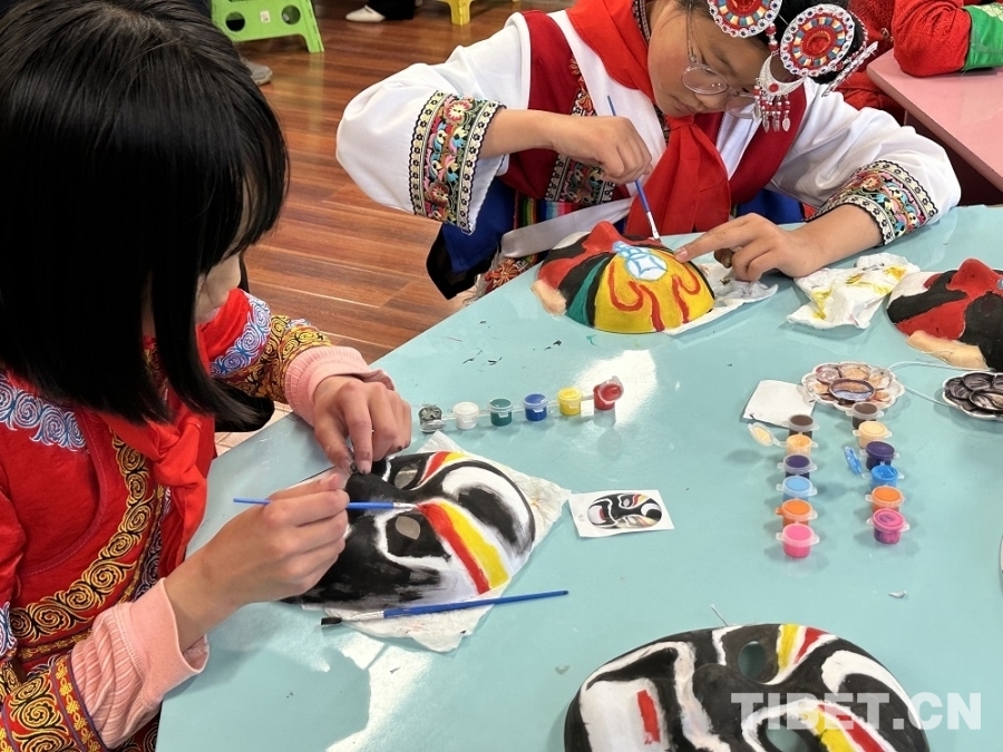 圖為學(xué)生們體驗(yàn)京劇臉譜繪畫(huà)