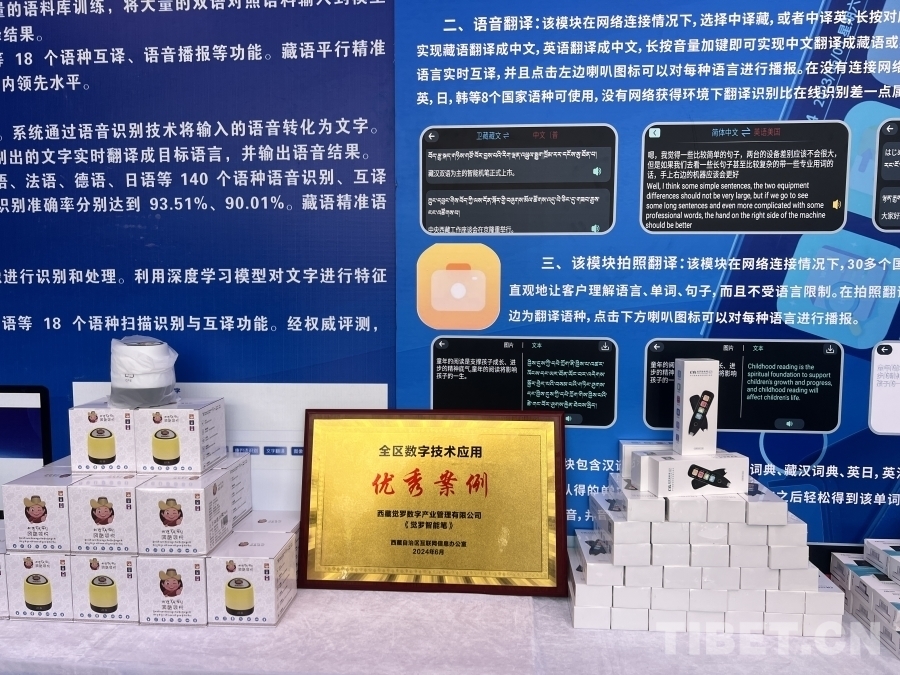 “叔叔阿姨,我們這個(gè)軟件可以掃這個(gè)二維碼下載,也可以在小程序上搜索,這個(gè)軟件在您日常生活中用處很大,來!我教您怎么使用。”西藏高弛信息技術(shù)服務(wù)有限責(zé)任公司的數(shù)字技術(shù)應(yīng)用體驗(yàn)展旁,圍著很多人,工作人員邊給大家發(fā)放宣傳資料,邊耐心地講解“藏譯通”藏漢雙語智能翻譯軟件的各大功能和使用方法。