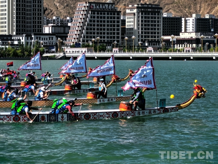 據(jù)了解,本次賽事系西藏首次舉辦,也是國內(nèi)海拔最高的牛皮船(龍舟)賽,以“鑄牢中華民族共同體意識,弘揚(yáng)中華民族傳統(tǒng)體育文化”為主題,邀請了來自遼寧、湖北、湖南、四川、云南、貴州和廣西的30名龍舟運(yùn)動員,與西藏自治區(qū)30名龍舟運(yùn)動員以及40名牛皮船運(yùn)動員進(jìn)行同場競技。最終,并肩前行隊(duì)、齊心破浪隊(duì)、和韻龍舟隊(duì)獲得龍舟賽前三名,提槳破水隊(duì)、奔跑吧羚羊隊(duì)、龍翔喜馬隊(duì)獲得牛皮船賽前三名。