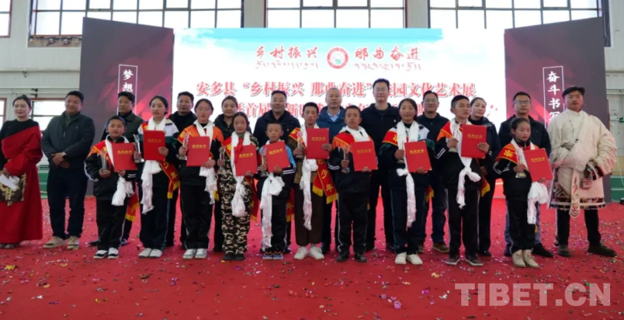圖為安多縣“鄉(xiāng)村振興 那曲奮進”校園文化藝術(shù)展暨首屆“新時代好少年”頒獎典禮現(xiàn)場