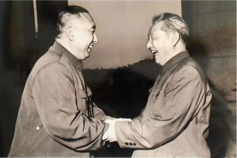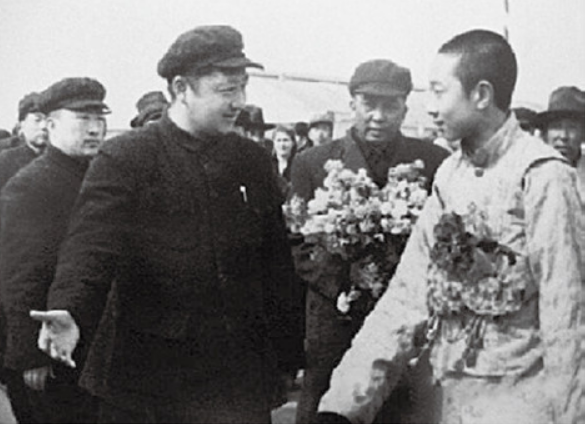 同年四月下旬,班禪從宏覺(jué)寺起程,赴京參加和平解放西藏的協(xié)議的簽訂。路過(guò)西安時(shí),習(xí)仲勛親自到機(jī)場(chǎng)迎接班禪一行。這是班禪第一次會(huì)見習(xí)仲勛同志。他走下迎機(jī)艙時(shí),習(xí)仲勛迎上來(lái)和班禪緊緊握手。這是他們神交已久的握手,彼此都留下了深刻的記憶。時(shí)隔多年后,班禪還給他的經(jīng)師和摯友嘉雅活佛說(shuō):“之前,我已和多少人握過(guò)手了。但習(xí)主任握著我的手時(shí),我心中有一種全新的感悟,好像有一股溫暖的暖流在心中流過(guò),這就是佛說(shuō)的緣分福報(bào)?!绷?xí)仲勛同志回憶他同班禪初次見面時(shí)的情形寫道:“一個(gè)活脫脫的英俊藏族少年活佛形象出現(xiàn)在我的眼前……有志不在年高,他的愛(ài)國(guó)熱情和坦誠(chéng)豪爽給我留下深刻的印象?!边@次見面是習(xí)仲勛和班禪四十載革命友誼的新起點(diǎn)。4月27日,班禪及堪廳僧俗官員一行45人抵達(dá)北京。周總理、朱德副主席等中央領(lǐng)導(dǎo)前往火車站迎接班禪。“五一”國(guó)際勞動(dòng)節(jié),毛主席在天安門城樓上親切接見班禪和阿沛,并作了長(zhǎng)時(shí)間的談話,意義重大。