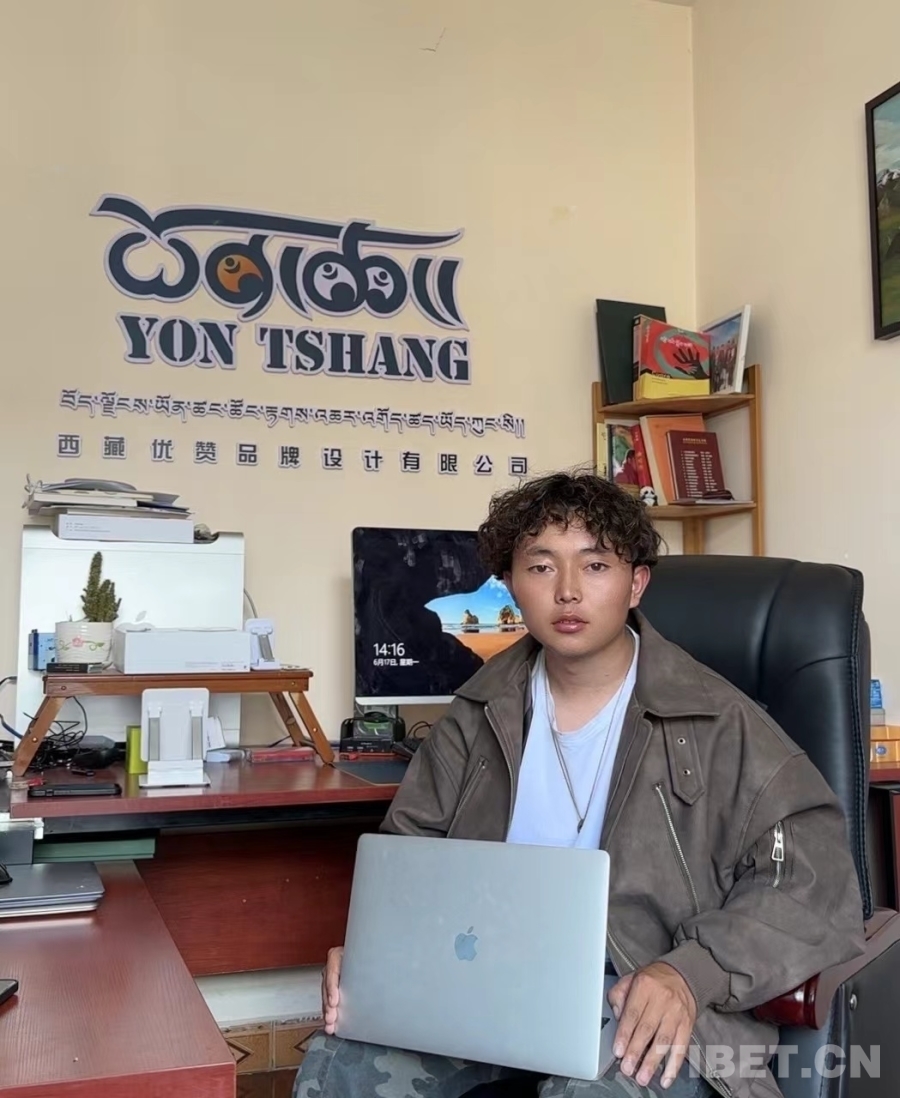 次仁頓珠是學(xué)院2022年平面設(shè)計(jì)專(zhuān)業(yè)的畢業(yè)生,也是全國(guó)第一屆職業(yè)技能大賽“西部技能之星”獲得者,我們到訪時(shí)他剛好回校做單元展。次仁頓珠畢業(yè)后和四個(gè)合伙人一起在拉薩創(chuàng)業(yè),創(chuàng)辦了優(yōu)贊品牌設(shè)計(jì)有限公司,主要業(yè)務(wù)包括產(chǎn)品包裝設(shè)計(jì)、logo設(shè)計(jì)和品牌設(shè)計(jì)。創(chuàng)業(yè)伊始全靠幾個(gè)合伙人自己出去推銷(xiāo),如今經(jīng)過(guò)老客戶(hù)口口相傳,很多客戶(hù)主動(dòng)來(lái)找他們,生意越來(lái)越好?!皠?chuàng)業(yè)兩年多,我大概分紅了40多萬(wàn),今年我們幾個(gè)合伙人都買(mǎi)了車(chē)。未來(lái)我們計(jì)劃擴(kuò)大公司的店面,好好裝修,然后開(kāi)始線上直播,以后在拉薩買(mǎi)了房子從昌都接?jì)寢屢黄饋?lái)住?!贝稳暑D珠向我們介紹,笑容中帶著羞澀與驕傲。