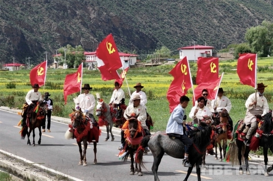 清晨,洛隆縣孜托鎮(zhèn)格亞村和夏果村的農(nóng)牧民黨員以“洛隆兒女心向黨”為主題,高舉著黨旗和國旗,在嘹亮的歌聲中騎馬巡游,以農(nóng)牧民黨員特有的方式,表達對黨的無限深情和美好祝福。