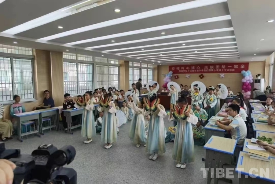 通過開展活動聯誼豐富交流內容打造特色活動品牌,圍繞民俗文化、人文地理、美食美景等內容交流互動,學生穿著民族服飾,互學方言共同表演經典誦讀《上春山》、古箏表演《三字經》《國風美少年》、鍋莊表演《強巴曲?!返裙?jié)目,展示了中華民族優(yōu)秀傳統(tǒng)文化,進一步增進學生之間的文化交流不斷增強學生“五個認同”。