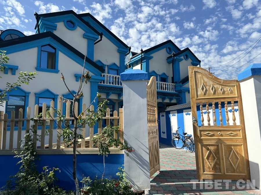 圖為喀贊其老街內(nèi)隨處可見(jiàn)的“伊犁藍(lán)”建筑 攝影:楊眉笑