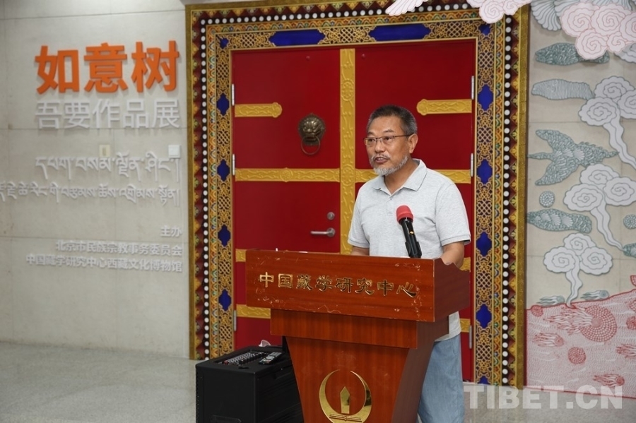 中國西藏網(wǎng)訊 7月5日,由北京市民族宗教事務(wù)委員會指導(dǎo)、中國藏學(xué)研究中心西藏文化博物館主辦的“如意樹——吾要作品展”在京開幕。中國藏學(xué)研究中心有關(guān)負(fù)責(zé)人和專家學(xué)者、北京市民族宗教事務(wù)委員會有關(guān)負(fù)責(zé)人、書籍設(shè)計(jì)師吾要及北京藝術(shù)界人士等60余人出席開幕式。