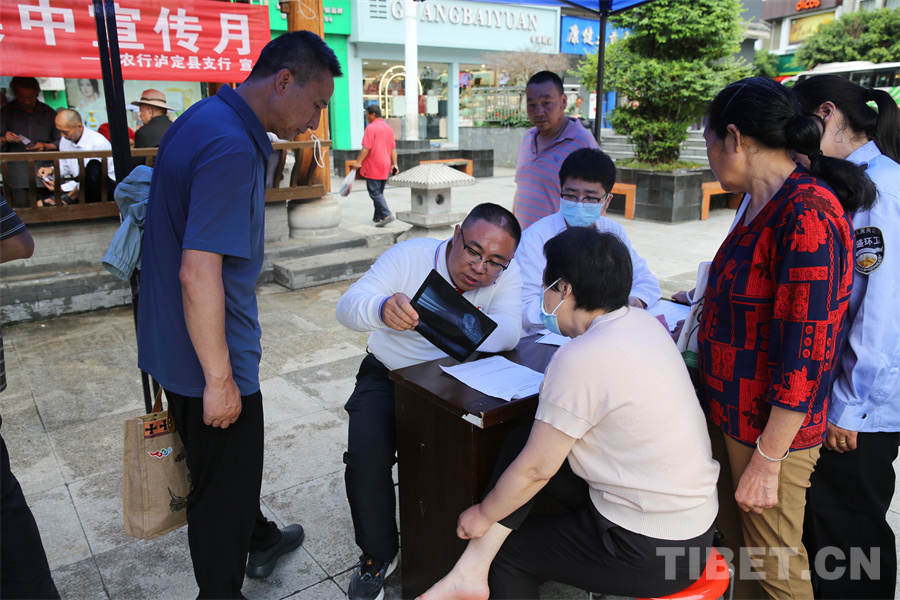 圖為瀘定橋廣場義診點(diǎn),骨科專家正在為患者診治 攝影:登真巴珍