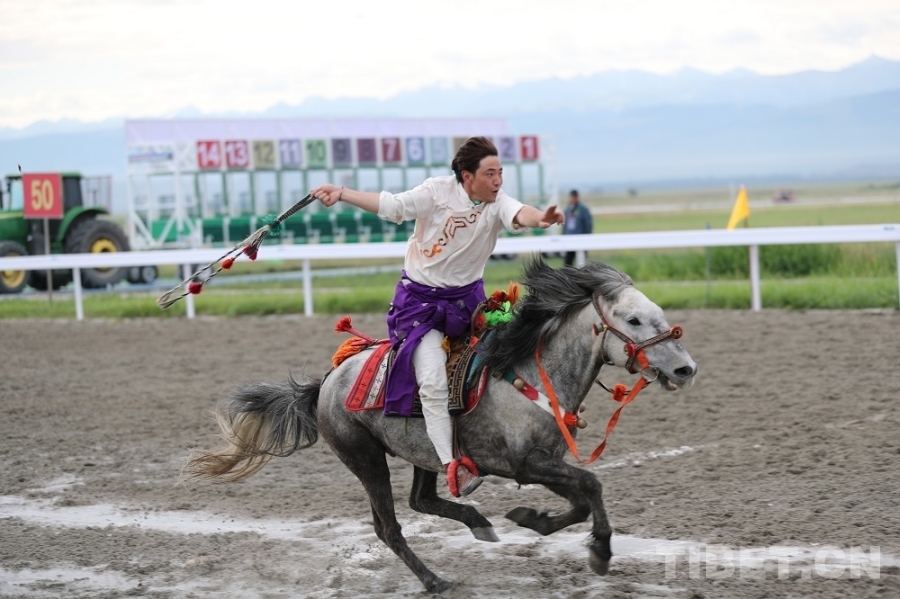圖為康巴馬術(shù)項目“乘馬拋石” 攝影:達哇才讓