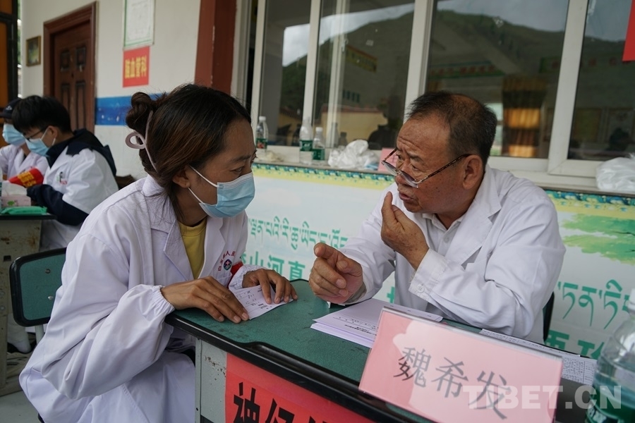 在協(xié)助義診過程中,四郎曲珍聽到很多老百姓表示醫(yī)生們不遠(yuǎn)千里從北京過來,不僅辛苦為大家問診,還免費(fèi)送藥,他們心里充滿了欣慰和感激。看到醫(yī)療專家們的盡心竭力和百姓們滿滿的獲得感,她對(duì)于這次活動(dòng)的意義,也有很深的感受?!拔矣X得同心這樣的活動(dòng)非常好。我們當(dāng)?shù)蒯t(yī)療條件有限,又因?yàn)榻煌ú荒敲捶奖?,老百姓看病很困難。有了這次活動(dòng),大家不需要大老遠(yuǎn)去找專家,也減輕了路上交通食宿等經(jīng)濟(jì)負(fù)擔(dān)。不僅如此,老師還可以一對(duì)一地指導(dǎo)我們當(dāng)?shù)氐尼t(yī)護(hù)人員,幫助我們提升醫(yī)療技能,以后可以更好地為老百姓服務(wù)?!?nbsp;