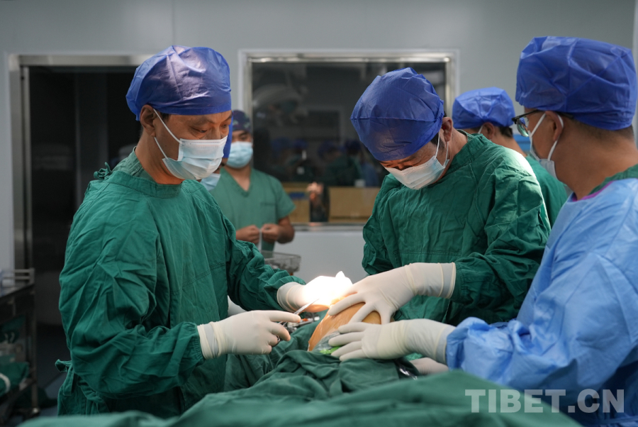 中國(guó)西藏網(wǎng)訊 2024年7月9日,在四川省甘孜藏族自治州巴塘縣人民醫(yī)院,“同心·共鑄中國(guó)心”醫(yī)務(wù)志愿者、北京積水潭醫(yī)院矯形骨科主任醫(yī)師李玉軍為一名患有膝關(guān)節(jié)病變的藏族患者實(shí)施了膝關(guān)節(jié)置換手術(shù)。