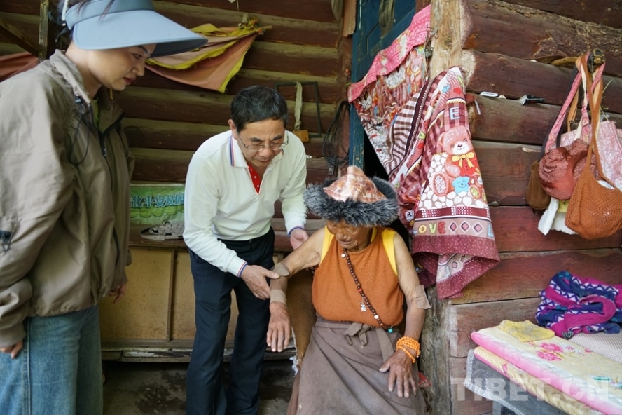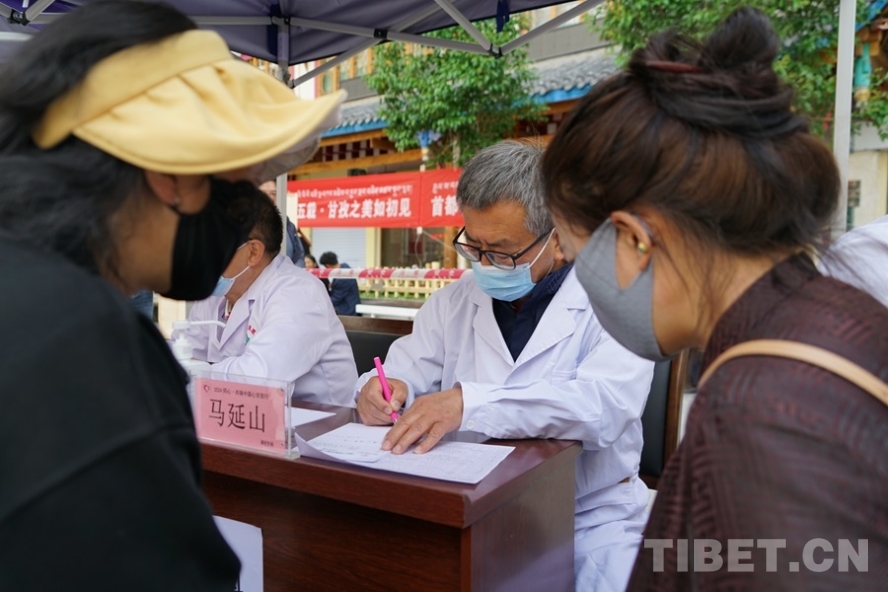 圖為7月7日,北京豐臺醫(yī)院副院長馬延山在白玉縣新時(shí)代文明廣場義診點(diǎn) 攝影:周晴晴