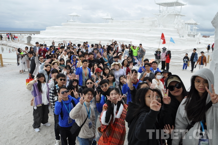 導(dǎo)游小段屢次溫柔提醒“請(qǐng)大家緊跟隊(duì)伍前行”,但她的聲音很快淹沒在“咔嚓咔嚓”的快門聲和“哇塞”的贊嘆聲中,響應(yīng)者寥寥。不過小段應(yīng)該早已習(xí)慣,畢竟這140位香港青少年學(xué)子來到的是被譽(yù)為“天空之境”的茶卡鹽湖景區(qū),他們每一步都踏著驚喜,手中的相機(jī)成了最忙碌的旅伴,爭(zhēng)相記錄下每一個(gè)不容錯(cuò)過的瞬間。學(xué)生們?cè)谛凶咧薪涣?,在按下快門的間隙分享著各自的震撼與感動(dòng)。你方拍罷我登場(chǎng),興奮之情溢于言表。