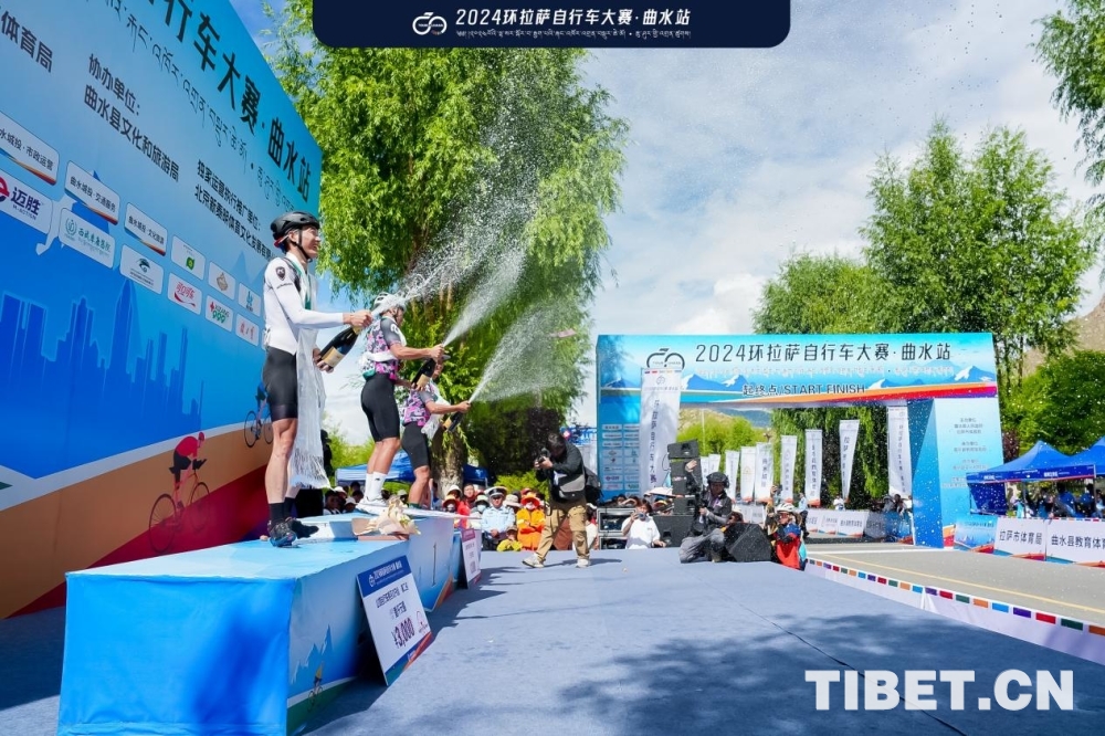 圖為2024環(huán)拉薩自行車大賽·曲水站比賽頒獎(jiǎng)環(huán)節(jié)