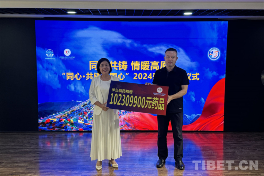 中國西藏網(wǎng)訊 8月5日,同心共鑄·情暖高原“同心·共鑄中國心”2024愛心捐贈儀式在北京舉行。步長制藥集團通過北京同心共鑄公益基金會向西藏、四川、云南、甘肅、青海等地的17個地市州的148個縣,無償捐贈呼吸道疾病防治藥——“宣肺敗毒顆粒”1.78萬箱,共171.3萬盒,價值1.02億元。