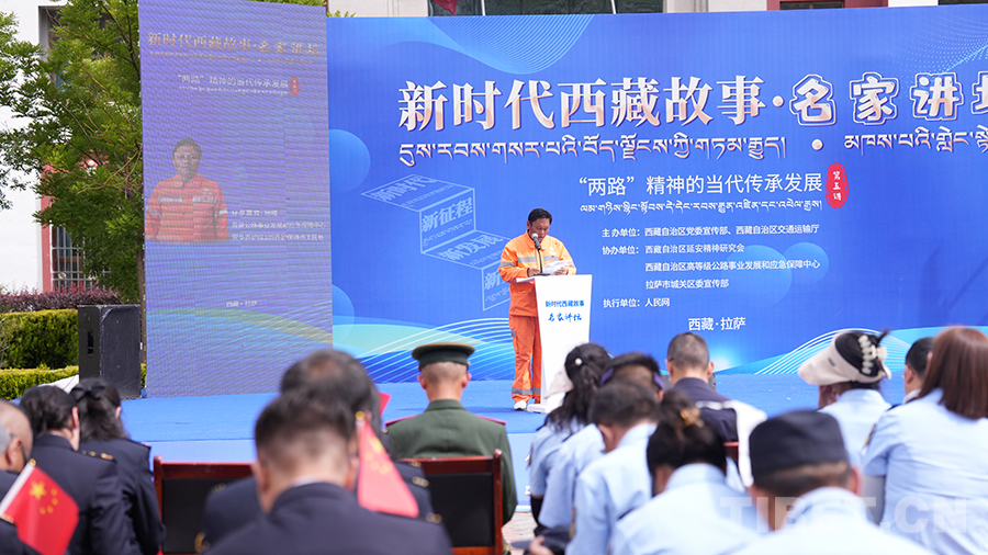 “在這條公路上,我們以‘人在路上、路在心上’的誓言為指引,繼承發(fā)揚‘頑強(qiáng)拼搏、甘當(dāng)路石’的‘兩路’精神和‘吃苦耐勞、甘于奉獻(xiàn)’的‘老西藏精神’,持續(xù)書寫著新時代公路養(yǎng)護(hù)工人的光榮與夢想?!钡馗略谛v活動最后深情地說。