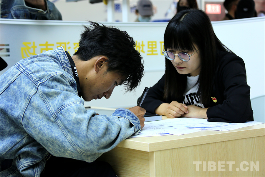 招聘會(huì)現(xiàn)場(chǎng)設(shè)有咨詢區(qū)、面試區(qū)及休息區(qū),提供一站式求職服務(wù)。會(huì)場(chǎng)內(nèi)的一塊大屏幕吸引了很多求職者的目光,工作人員介紹道:“屏幕滾動(dòng)展示陜西省、河北省的援藏崗位。我們是鼓勵(lì)區(qū)外就業(yè)的,有補(bǔ)貼政策。為爭(zhēng)取這些崗位,我們積極主動(dòng)與河北省、陜西省對(duì)接,通過回訪兩省三企等方式降低崗位招入要求,進(jìn)一步增加崗位匹配度?!?/p>
