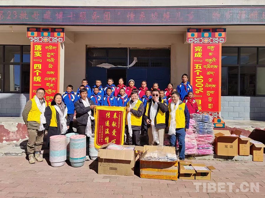2023年11月,作為北京市新聯(lián)會理事、石景山區(qū)新聯(lián)會會長、朵云文化藝術(shù)服務(wù)中心主任,我第二次到西藏,隨公益組織雙閃車隊、援藏博士服務(wù)團一起到日喀則市定日縣絨轄鄉(xiāng)完小,為這所邊境小學(xué)捐贈了價值1000元的文具。