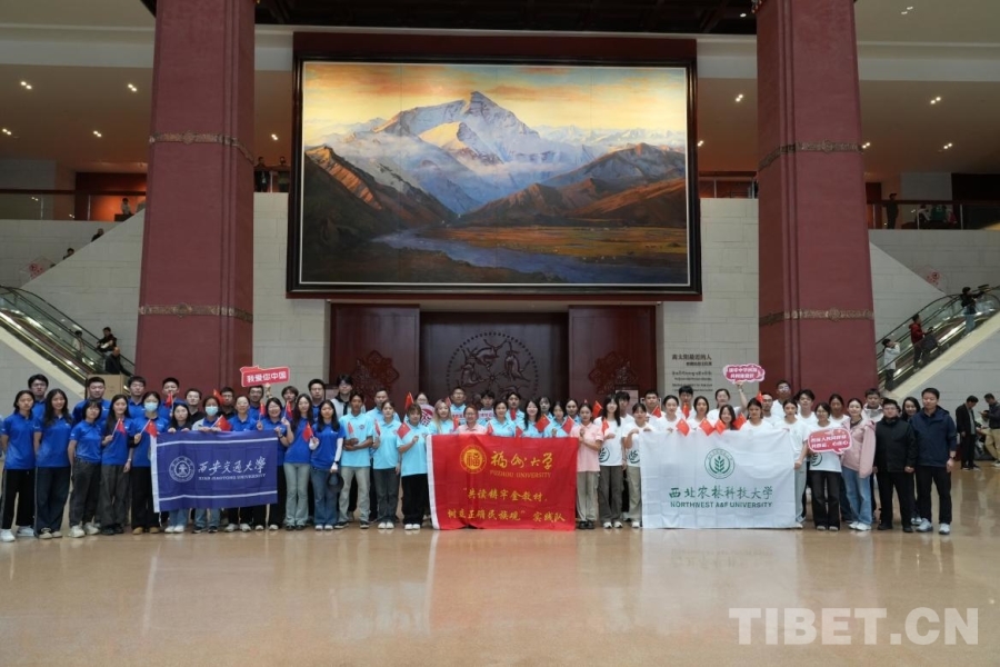 圖為西安交通大學、福州大學和西北農(nóng)林科技大學的暑期實踐隊參觀西藏博物館