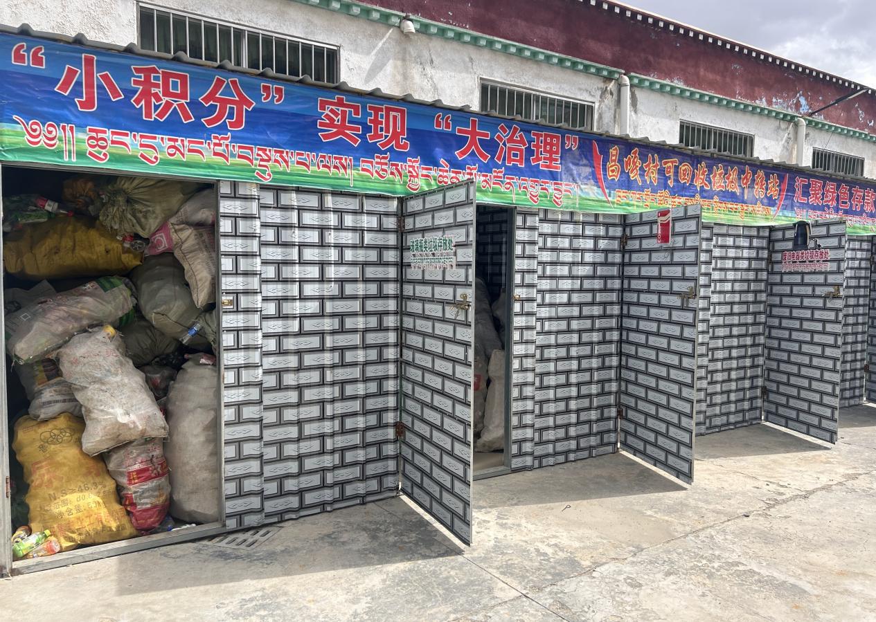 積分制促進(jìn)了社區(qū)聯(lián)結(jié)和經(jīng)濟(jì)消費(fèi),還推動(dòng)了鄉(xiāng)村生態(tài)的良性治理。瓊結(jié)縣加麻鄉(xiāng)昌嘎村駐村工作隊(duì)的格桑多吉展示了“五門(mén)聯(lián)排”的可回收垃圾中轉(zhuǎn)站,“這些垃圾由村委會(huì)收集起來(lái)后統(tǒng)一送去回收,回收的資金會(huì)放在‘文化銀行’中用于購(gòu)買新的積分物品?!倍劣凇袄钡膩?lái)源,則依賴“綠色銀行”對(duì)村民的激勵(lì)。“包括壞的電飯煲、高壓鍋,都可以送到村委會(huì)進(jìn)行統(tǒng)一回收?!备裆6嗉榻B說(shuō),村民將分類整理好的垃圾送至“綠色銀行”,通過(guò)“兩委”班子和村務(wù)監(jiān)督委員會(huì)委員核定之后,可以根據(jù)《綠色銀行兌換項(xiàng)目表》直接兌換商品用于日常生產(chǎn)生活。自“綠色銀行”推行以來(lái),昌嘎村累計(jì)兌換商品總價(jià)值6千元,讓行動(dòng)變積分、積分變商品,充分調(diào)動(dòng)了群眾參與鄉(xiāng)村生態(tài)建設(shè)的積極性。