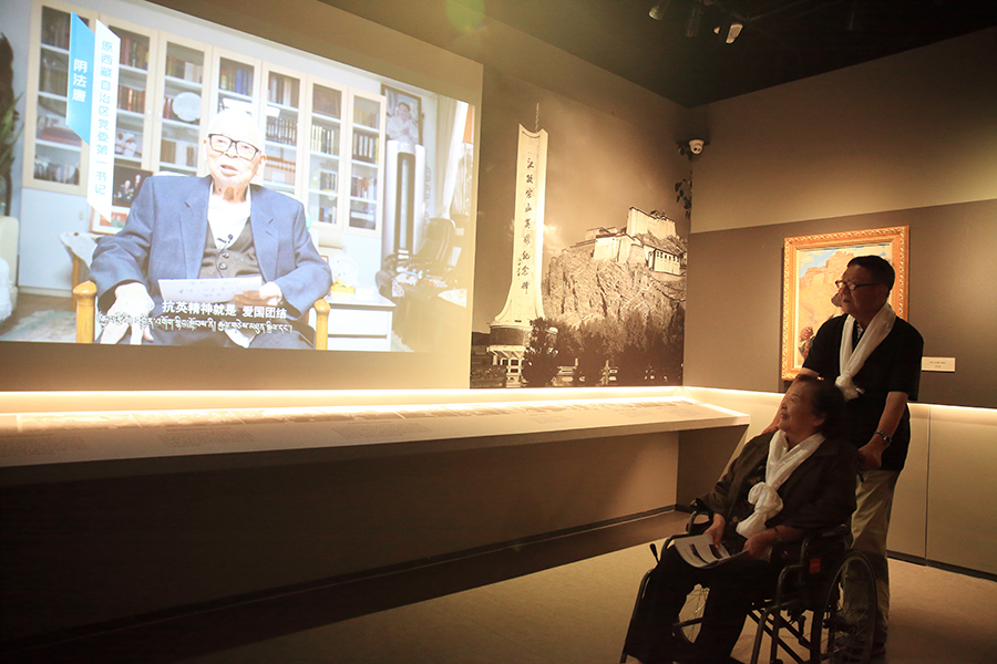 中國西藏網(wǎng)訊 9月3日,首批進(jìn)軍西藏的女兵、92歲高齡的李國柱老人,在家人陪同下,來到中國藏學(xué)研究中心西藏文化博物館,參觀“宗山號角——紀(jì)念西藏江孜抗英保衛(wèi)戰(zhàn)120周年主題展”。