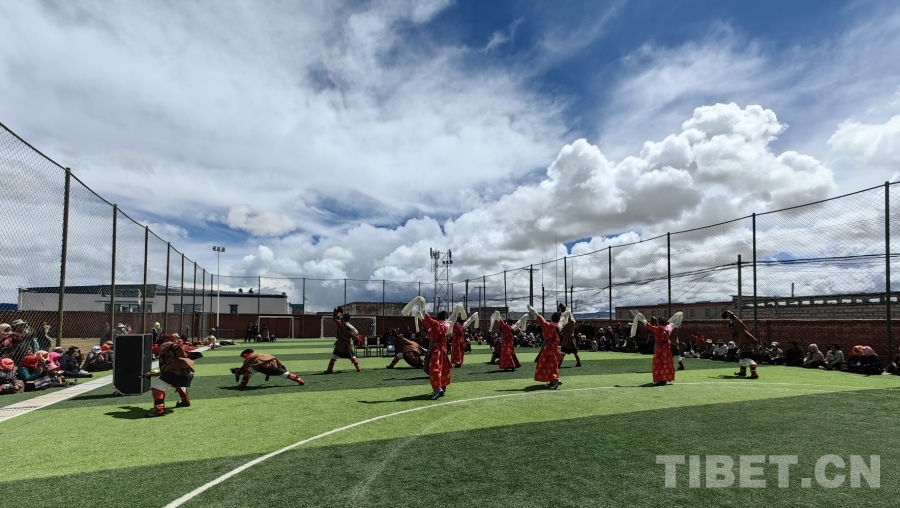 中國(guó)西藏網(wǎng)訊 9月5日,西藏自治區(qū)那曲市班戈縣文化和旅游局納木錯(cuò)民間藝術(shù)團(tuán)在班戈縣北拉鎮(zhèn),以“我們的中國(guó)夢(mèng) 文化進(jìn)萬家”為主題,為廣大群眾送上一場(chǎng)充滿濃厚傳統(tǒng)文化,注滿深情厚誼的文藝惠民演出。