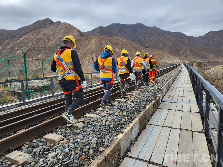 中國(guó)西藏網(wǎng)訊 9月28日,在青藏鐵路三岔河特大橋上,中國(guó)鐵路青藏集團(tuán)公司格爾木工務(wù)段8名橋隧工正在給橋梁做“體檢”,進(jìn)行一年一度的橋墩檢修工作。