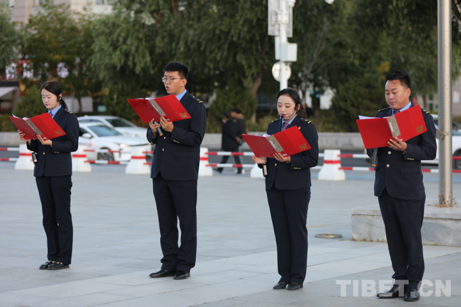 中國(guó)西藏網(wǎng)訊 在新中國(guó)成立75周年這一榮耀時(shí)刻,拉薩火車站舉行了一場(chǎng)莊嚴(yán)而隆重的升國(guó)旗儀式。10月1日上午8時(shí)整,雄渾的國(guó)歌聲奏響,駐站武警儀仗隊(duì)邁著整齊劃一的步伐,護(hù)衛(wèi)著五星紅旗走向國(guó)旗基座。在火車站干部職工的凝視下,五星紅旗冉冉升起,那是祖國(guó)繁榮昌盛的象征。