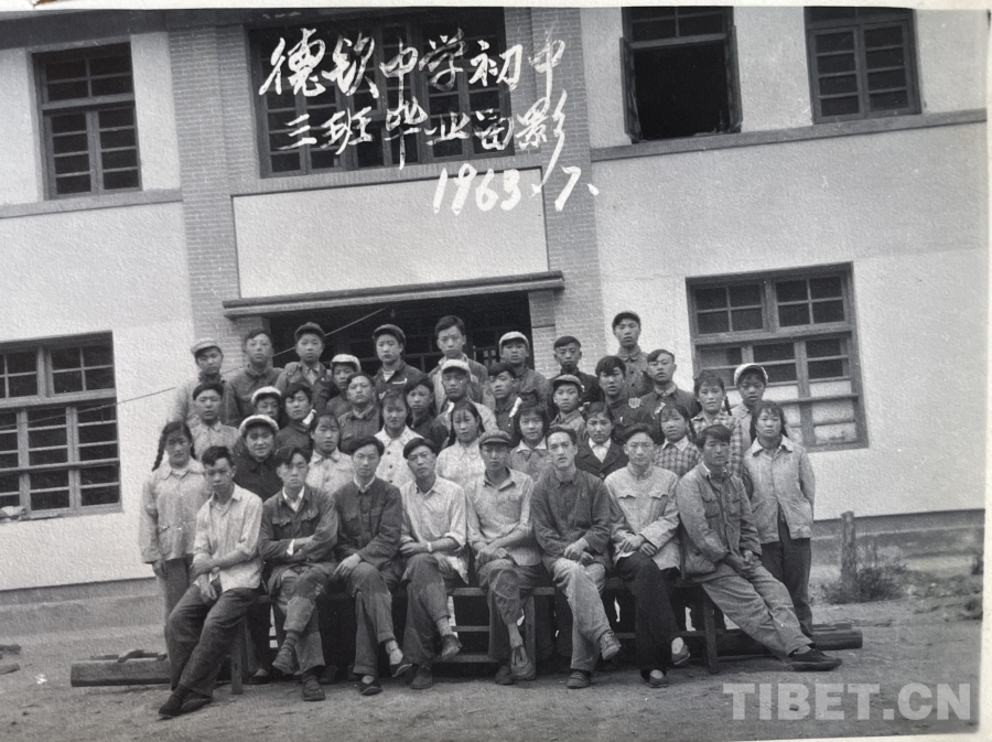 圖為1963年,訪談對象牛宿光(前排左二)與德欽中學初中三班畢業(yè)合影 供圖:李志農(nóng)