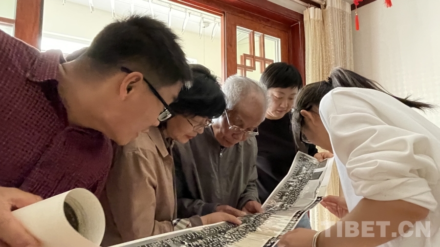 圖為2021年3月,李志農(nóng)等《口述史》一書的作者與訪談對象朱蘭溪一同看老照片 供圖:李志農(nóng)