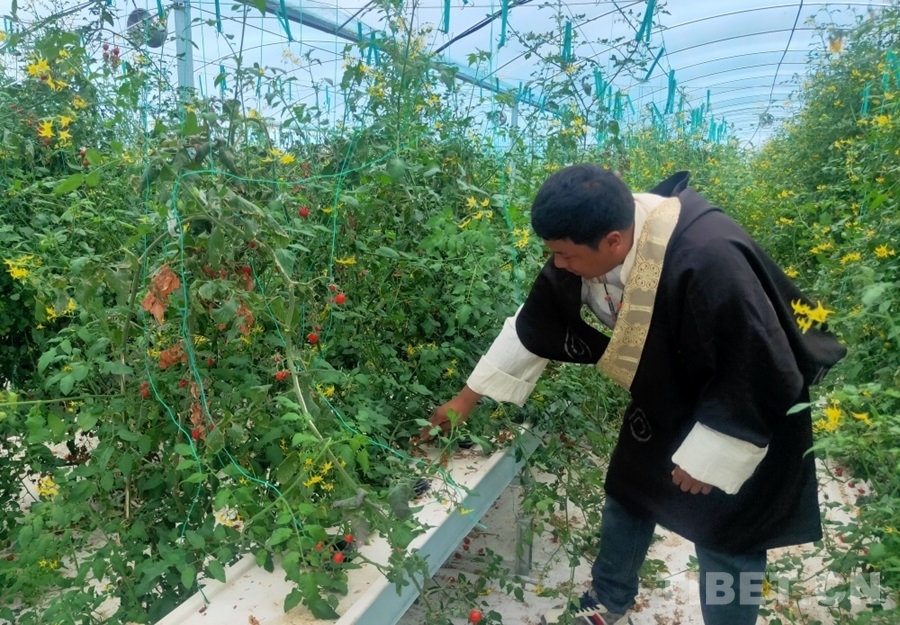 中國西藏網訊 “我今年34歲,是村里的大學生,從去年開始在這里工作?!苯罎扇蕘碜圆际邪怂蘅h旺比村,是八宿縣物聯(lián)網高效植物工廠的生產管理員?!拔覀兩a的圣女果主要在縣里銷售,收益很好。這邊固定員工有三位大學生和兩位旺比村村民。果子采摘的時候,忙不過來,我們還需要再多找些村民來幫忙,每天能給到160元的工資?!闭勂鹱约核诘闹参锕S,江永澤仁語氣中的滿意和驕傲溢于言表?!懊髂晡覀冞€要計劃種植藍莓呢,已經有同事到山南去參加相關培訓了?!?nbsp;
