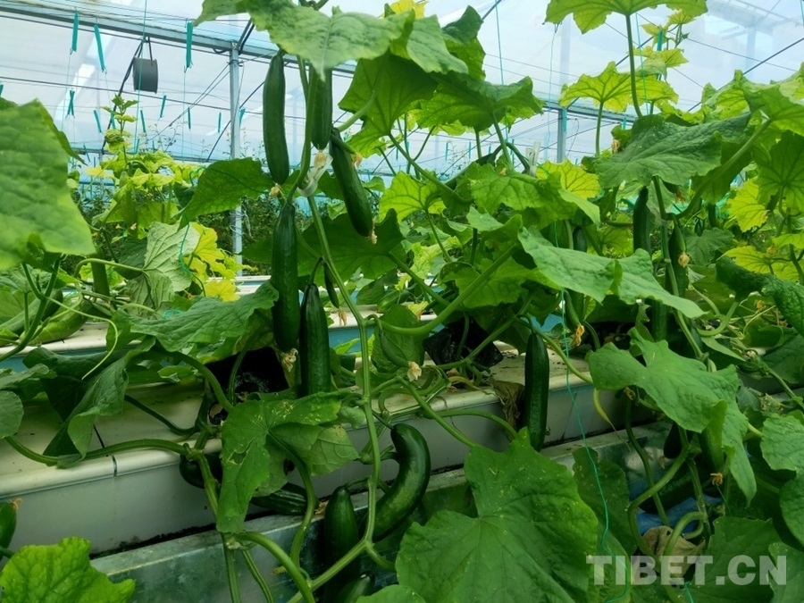 圖為八宿縣物聯(lián)網高效植物工廠種植的黃瓜 攝影:周晴晴