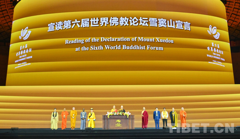 圖為閉幕式現(xiàn)場宣讀第六屆世界佛教論壇雪竇山宣言