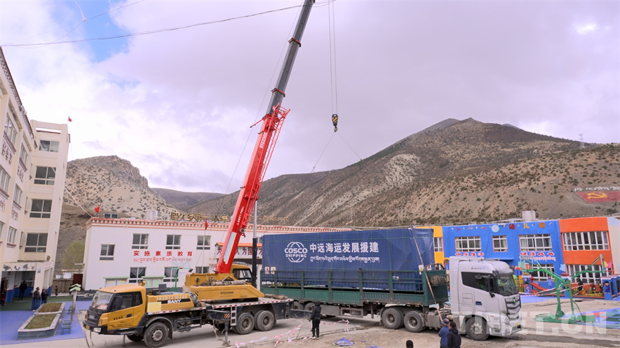 近日,中遠海運集團2024年援建的西藏自治區(qū)昌都市洛隆縣臘久鄉(xiāng)第一小學集裝箱食堂和G349洛隆段集裝箱文旅驛站,用20臺大卡車裝車,從遼寧省錦州市出發(fā),經(jīng)國道G349等道路,連續(xù)奔波近4000公里,順利運抵洛隆。